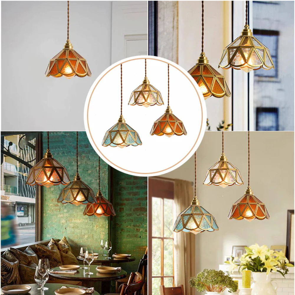 Retro Artistic Brass Colored Glass Small Pendant Light Bedside Glass Lamp