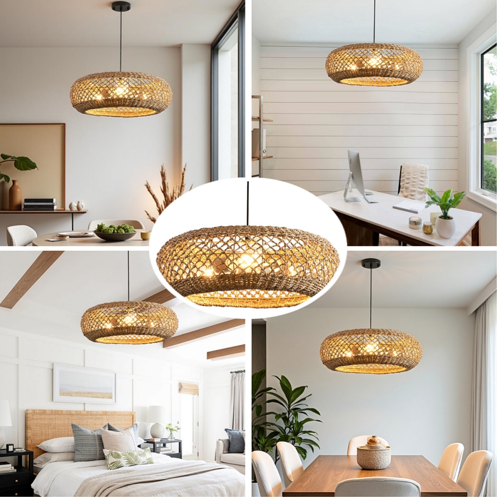 Handcrafted from natural seagrass, this vintage pendant light oozes boho charm with its textured weave and earthy tones. It casts a warm, diffused glow that softens any space, perfect for brightening living rooms, dining areas or sunrooms with a laid-back, coastal-inspired vibe.