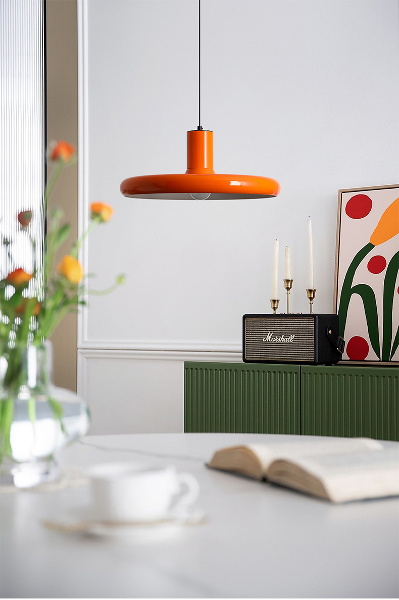This Danish-style designer wrought iron chandelier is the perfect blend of vintage charm and modern elegance to enhance your dining experience. Made from high-quality metal, this pendant light not only illuminates your space but also adds a touch of sophisticated vintage aesthetic to your dining table. Featuring sophisticated yet minimalist design elements, this chandelier is reminiscent of mid-century Danish design, showcasing clean lines and subtle geometric balance. The sturdy iron frame ensures durability, while its expertly machined finish enhances rustic appeal, complementing both classic and contemporary decor.