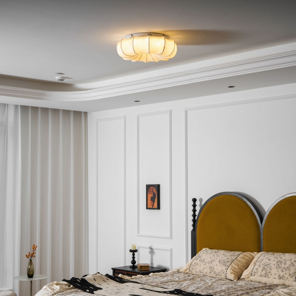 Adorned with delicate French-inspired patterns, this fabric ceiling light casts a soft, diffused glow that wraps your bedroom in cozy romance. Its flush-mount design fits seamlessly into low ceilings, blending vintage charm with practicality to elevate your sleep space with timeless elegance.