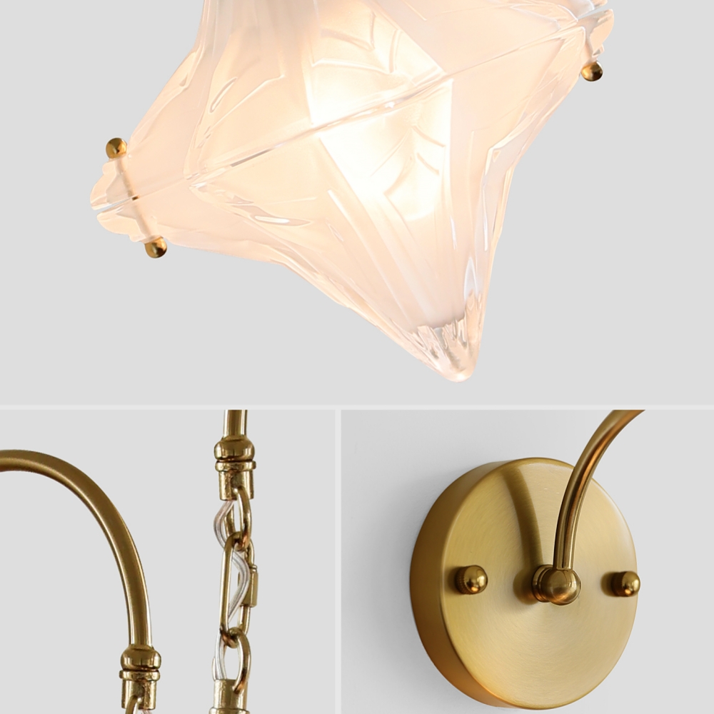 This wall lamp marries French Bauhaus charm with a whimsical star-shaped glass design. Its sleek lines and minimalist vibe blend modern elegance with subtle artistry, casting soft, diffused light that elevates any space. More than just lighting, it doubles as a decor piece—adding a touch of sophistication to living rooms, bedrooms, or hallways, perfect for those craving understated yet stylish home accents.