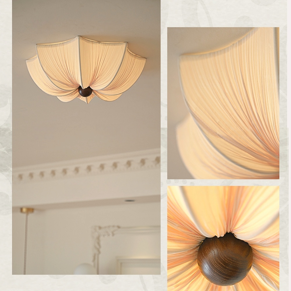 French Retro Fabric Petal Ceiling Light Vintage Flush Mount