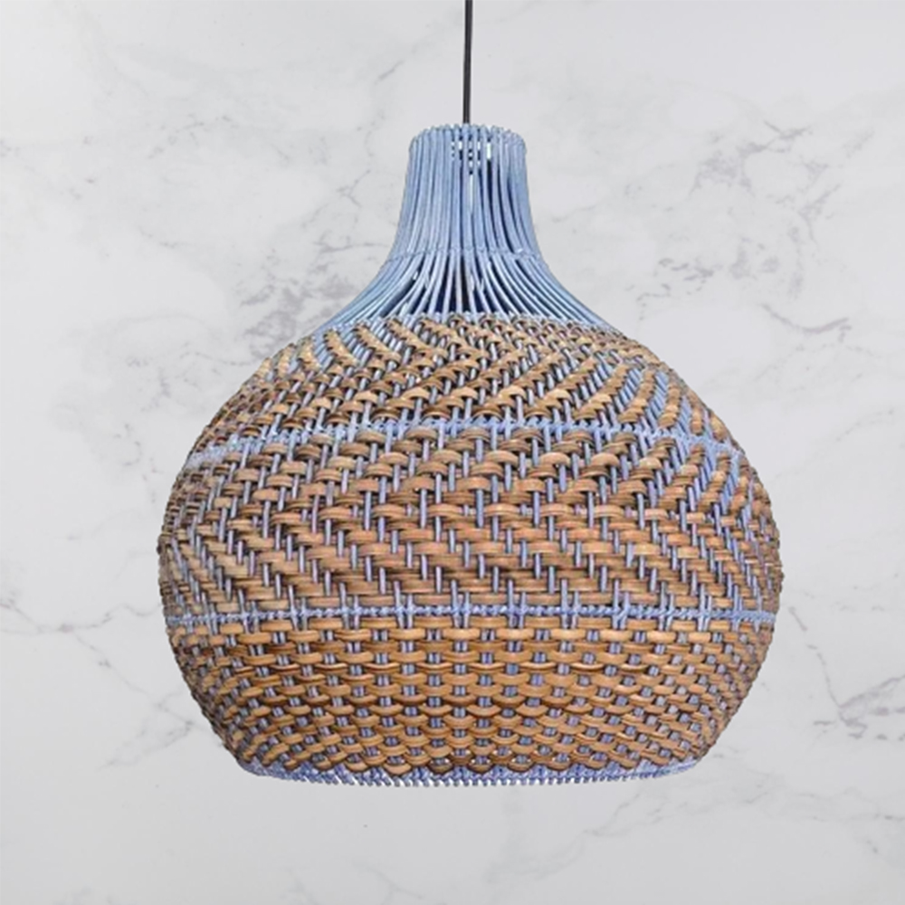 Blue Rattan Dome Pendant Lights For Kitchen Island