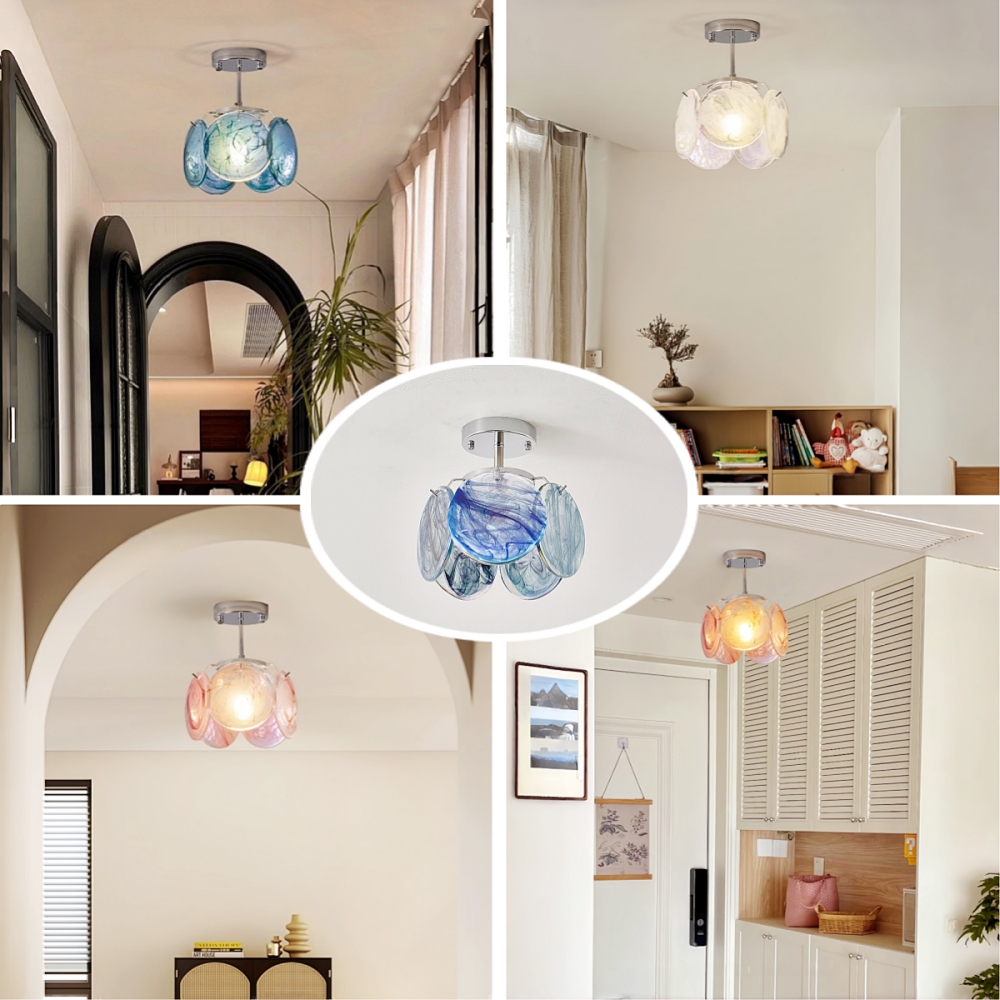 Crafted with time-honored artistry, this ceiling light highlights handcrafted glass’s timeless beauty—boasting unique textures and subtle color variations. Its elegant design complements modern, eclectic, or traditional interiors, emitting a warm, luminous glow. More than lighting, it’s an exclusive work of art that adds sophistication to any room.