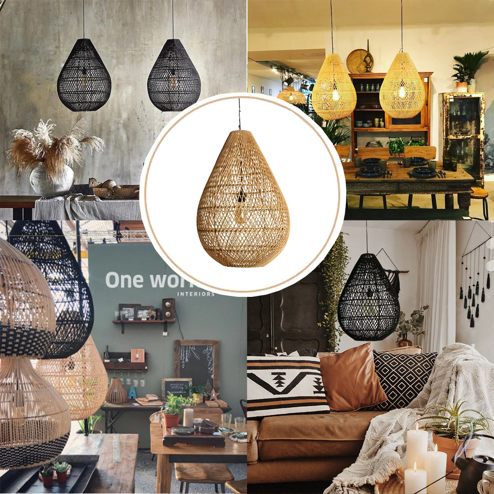 Handmade Rattan Chandelier Tear Shape Lantern Pendant Lamp