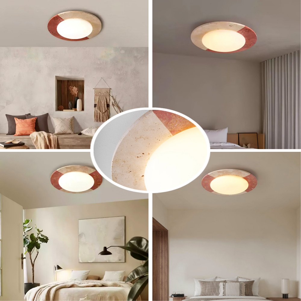 Crafted from textured yellow travertine, this ceiling light embraces Japanese minimalism with clean, understated lines. It diffuses a soft, warm glow that wraps your bedroom in tranquil vibes, blending rustic natural charm with sleek simplicity to turn your sleep space into a cozy zen retreat.