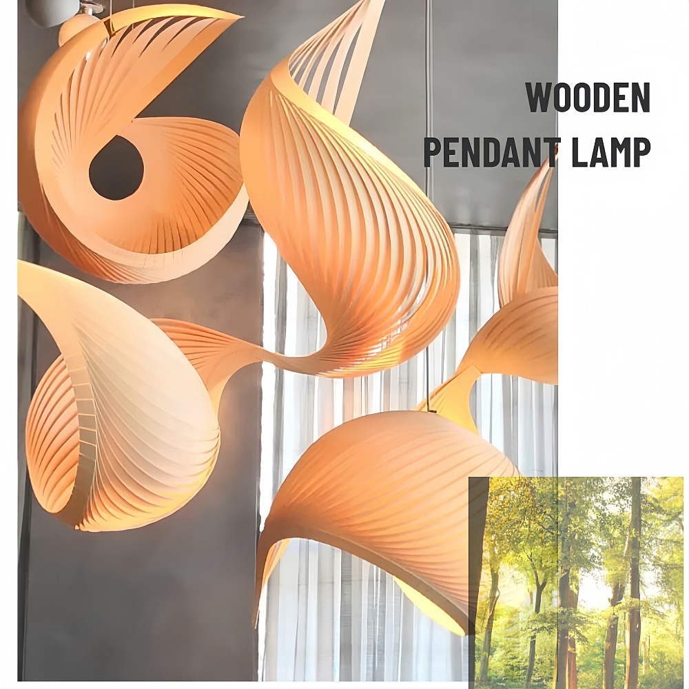 This wooden pendant light blends loft edge with Japanese-inspired artistry, featuring conch motifs that add unique flair. Warm wood tones pair with artistic details, casting a cozy glow perfect for restaurants. A striking fusion of rustic charm and creative design, it elevates dining spaces with character.