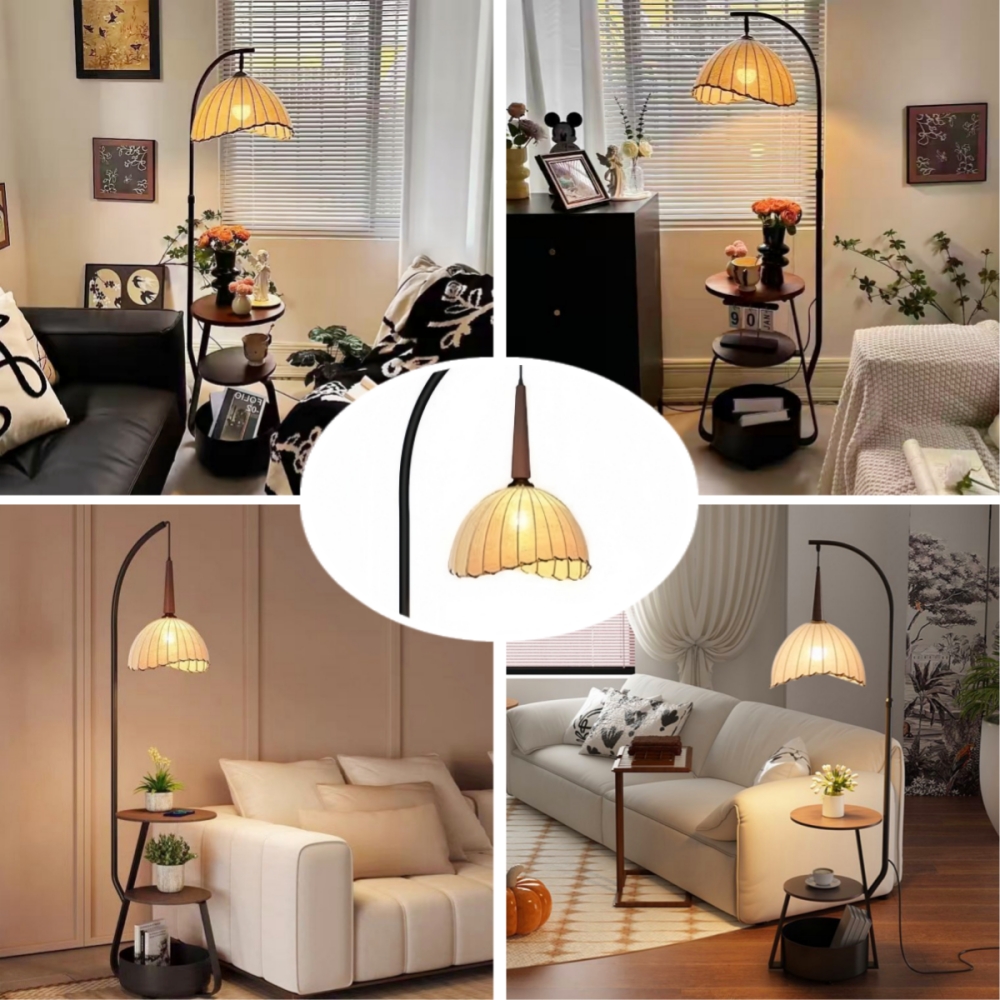 Medieval-Style Living Room Storage Shelf Integrated Floor Lamp