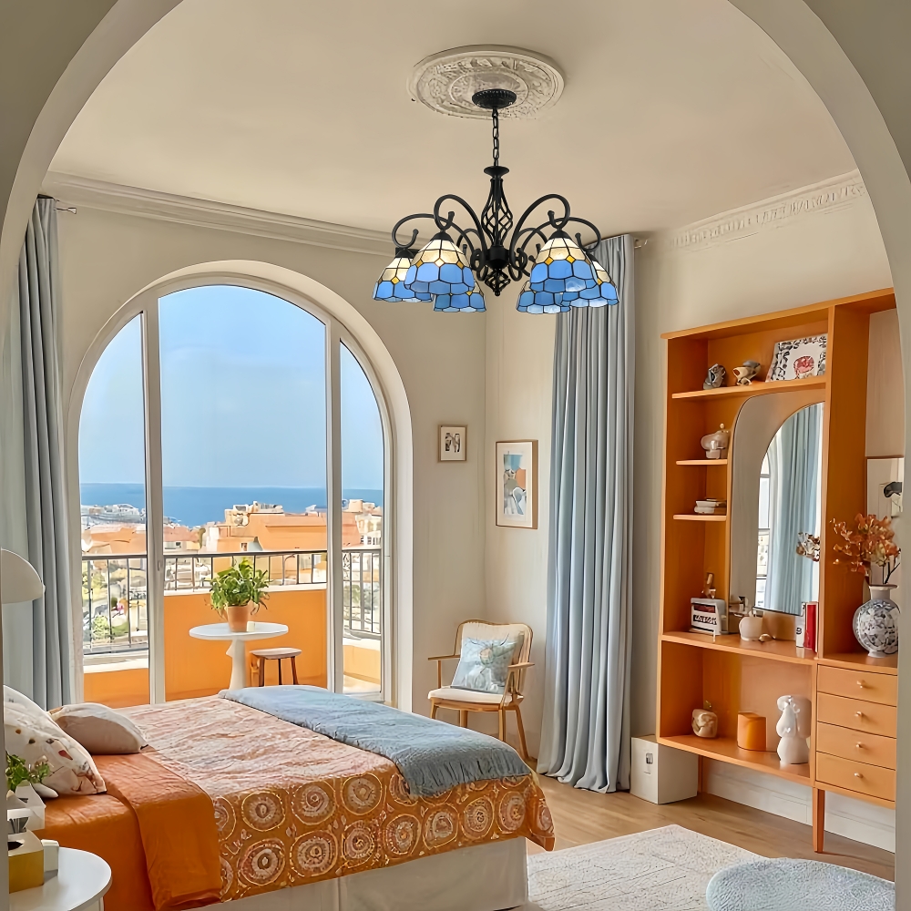 This lighting fixture showcases the charm of Mediterranean style. Made of high-quality glass and hand blown into colorful glass, it shines brilliantly. It has excellent high temperature resistance and cannot be melted by burning. The unique design adds a rich artistic atmosphere to the home, making you feel as if you are immersed in a romantic Mediterranean style.