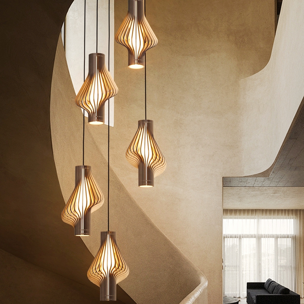 Featuring smooth curved wooden slats in a flowing silhouette, this pendant brings understated mid-century elegance to any interior. The natural wood tones diffuse a soft, warm glow, creating a calm and cozy atmosphere perfect for dining areas, bedrooms, and modern minimalist spaces.