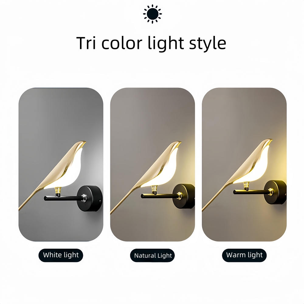 This creatively designed wall lamp features an elegant magpie shape, adding a touch of charm to any space. Available in single - headed and double - headed sizes, it suits various room layouts. Crafted from durable aluminum alloy with a soft - diffusing acrylic lampshade, it ensures uniform, eye - friendly lighting, blending artistry with functionality seamlessly.