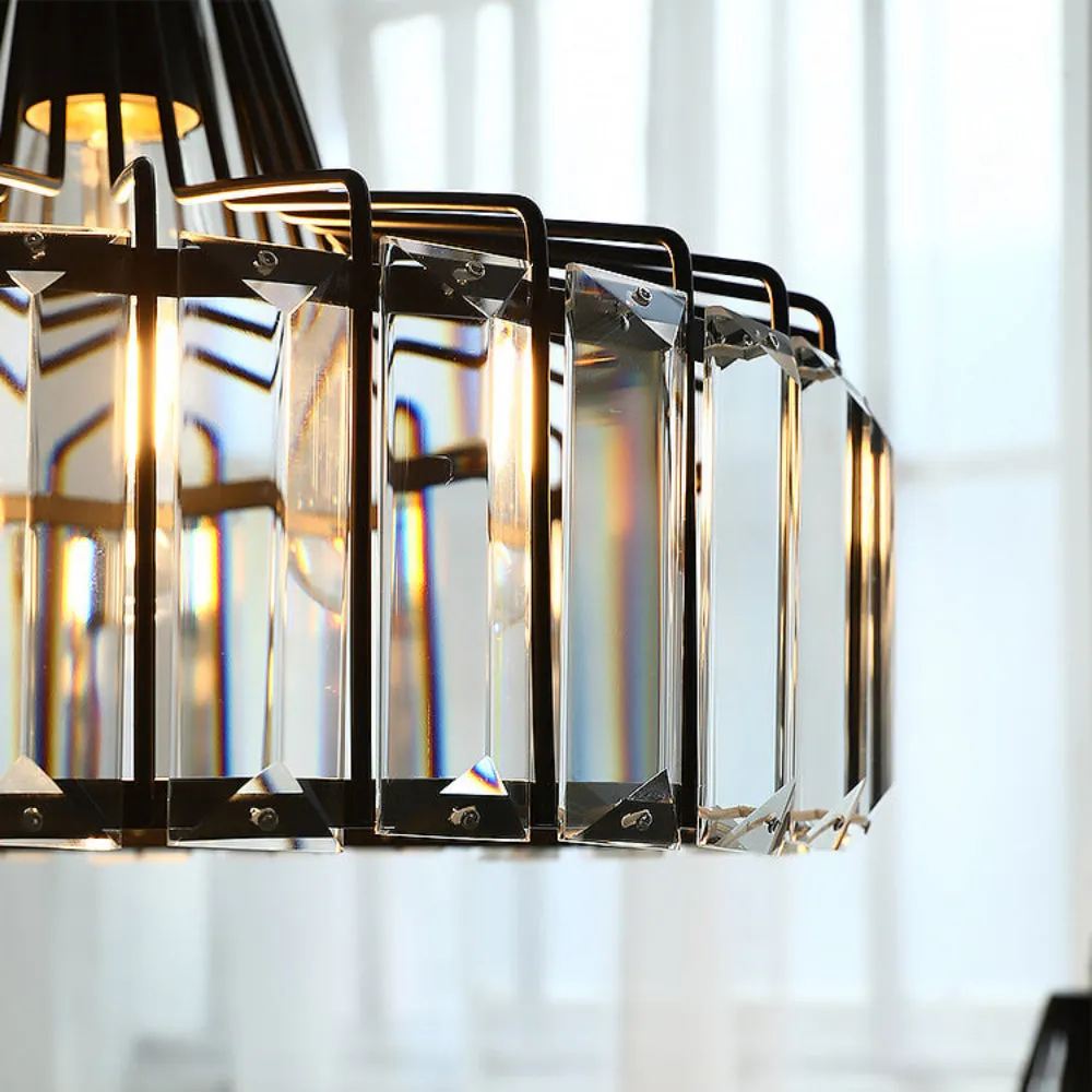 This modern style crystal chandelier is carefully crafted with high-quality K9 crystal, each crystal reflecting a brilliant light, adding a luxurious texture to the space. The perfect fusion of simple lines and transparent and crystal clear materials elevates the style of your living room instantly, showcasing elegance and taste. Suitable for various modern home decorations, lighting up warm and fashionable living spaces.