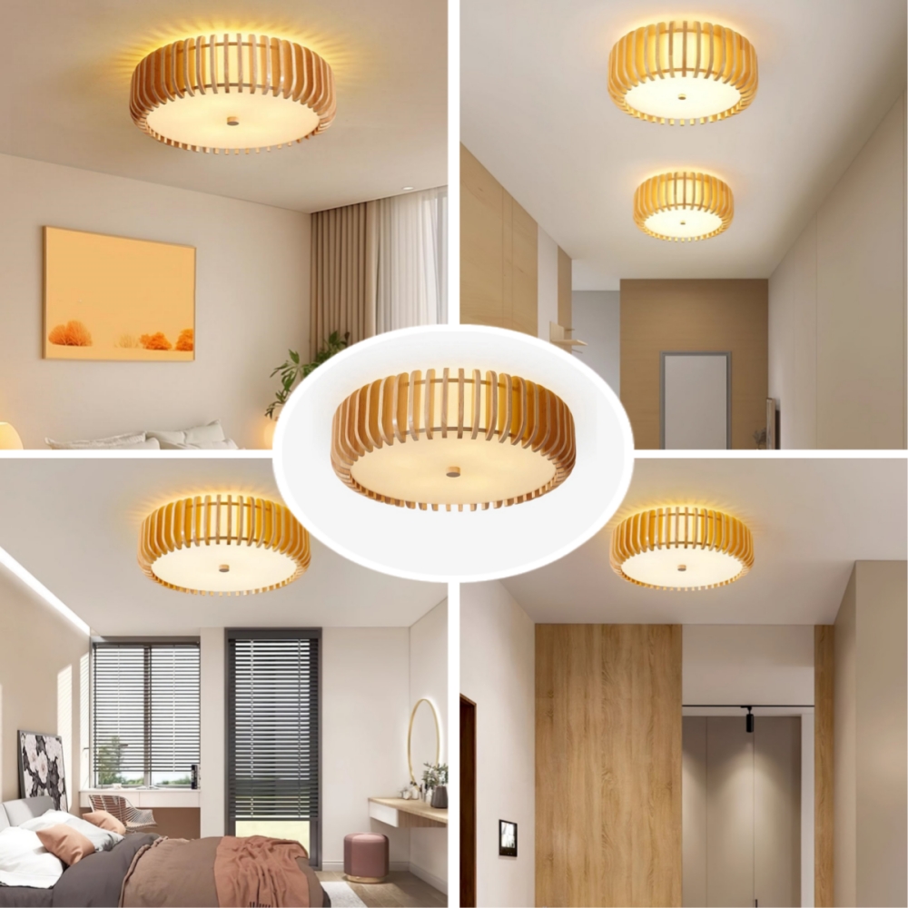 Crafted with natural wood, this ceiling light embraces modern minimalism with clean lines and a warm, muted finish. It diffuses soft, gentle illumination, ideal for creating a cozy, tranquil vibe in bedrooms. A seamless blend of functionality and understated style, it elevates sleep spaces with subtle, organic charm.
