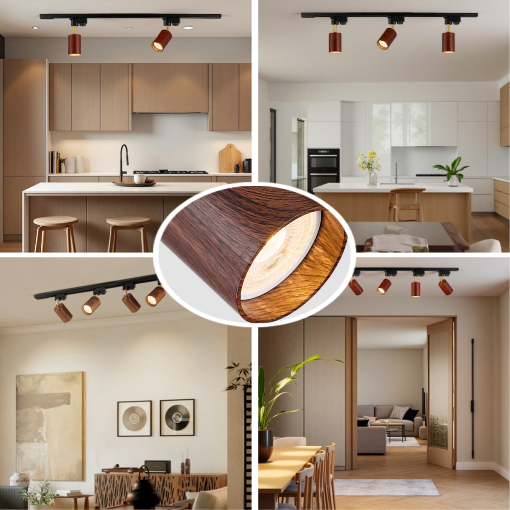This track spotlight blends modern sleekness with warm wood grain, adding a cozy touch to sharp, contemporary design. Its open-mounted style keeps spaces uncluttered, while the adjustable angle lets you direct light exactly where you need—highlighting art, shelves, or dining areas. More than just lighting, it’s a flexible accent: functional for task lighting, yet stylish enough to elevate kitchens, living rooms, or home offices with understated flair.
