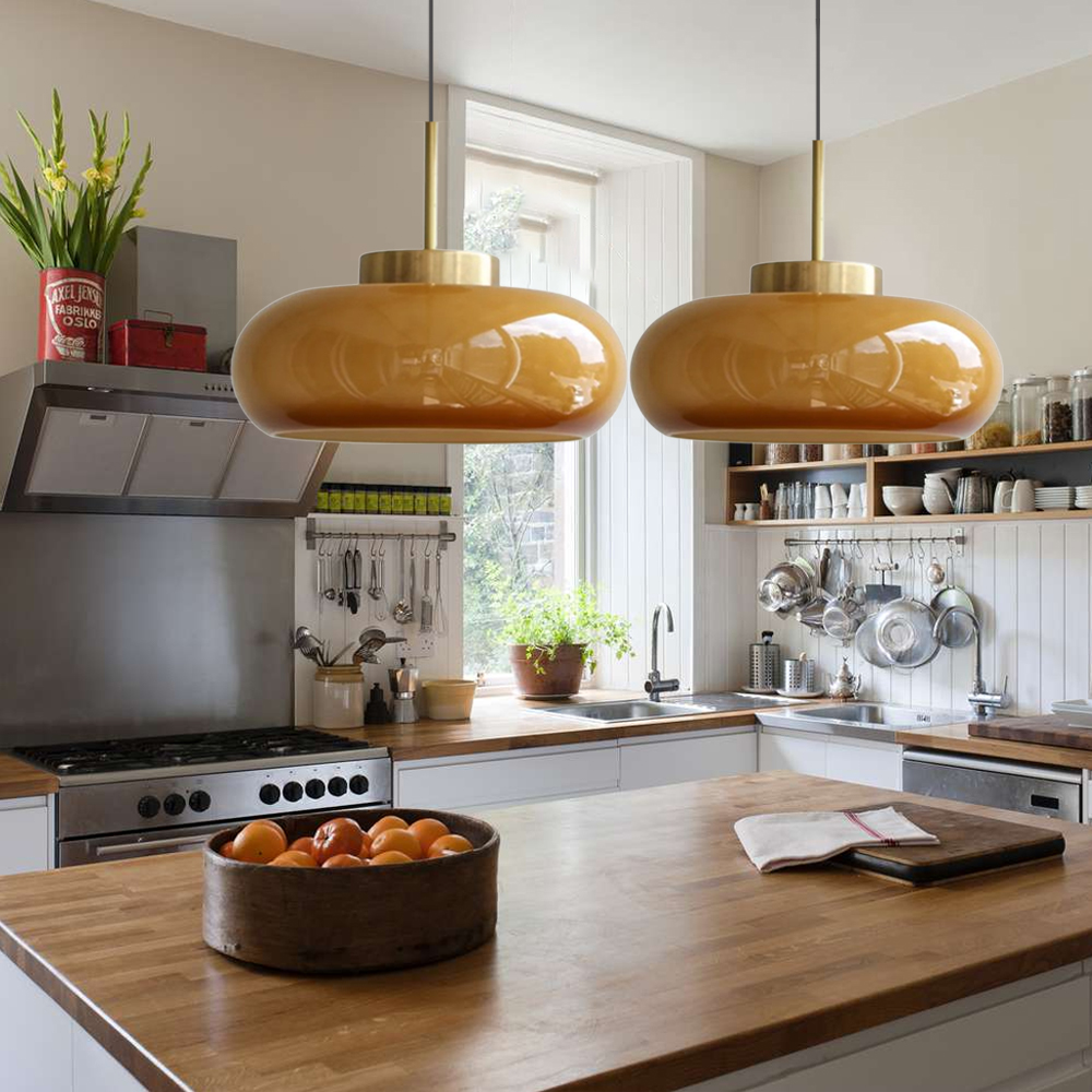 Mid Century Modern Yellow Glass Pendant Light Dining Room Bedroom Chandeliers