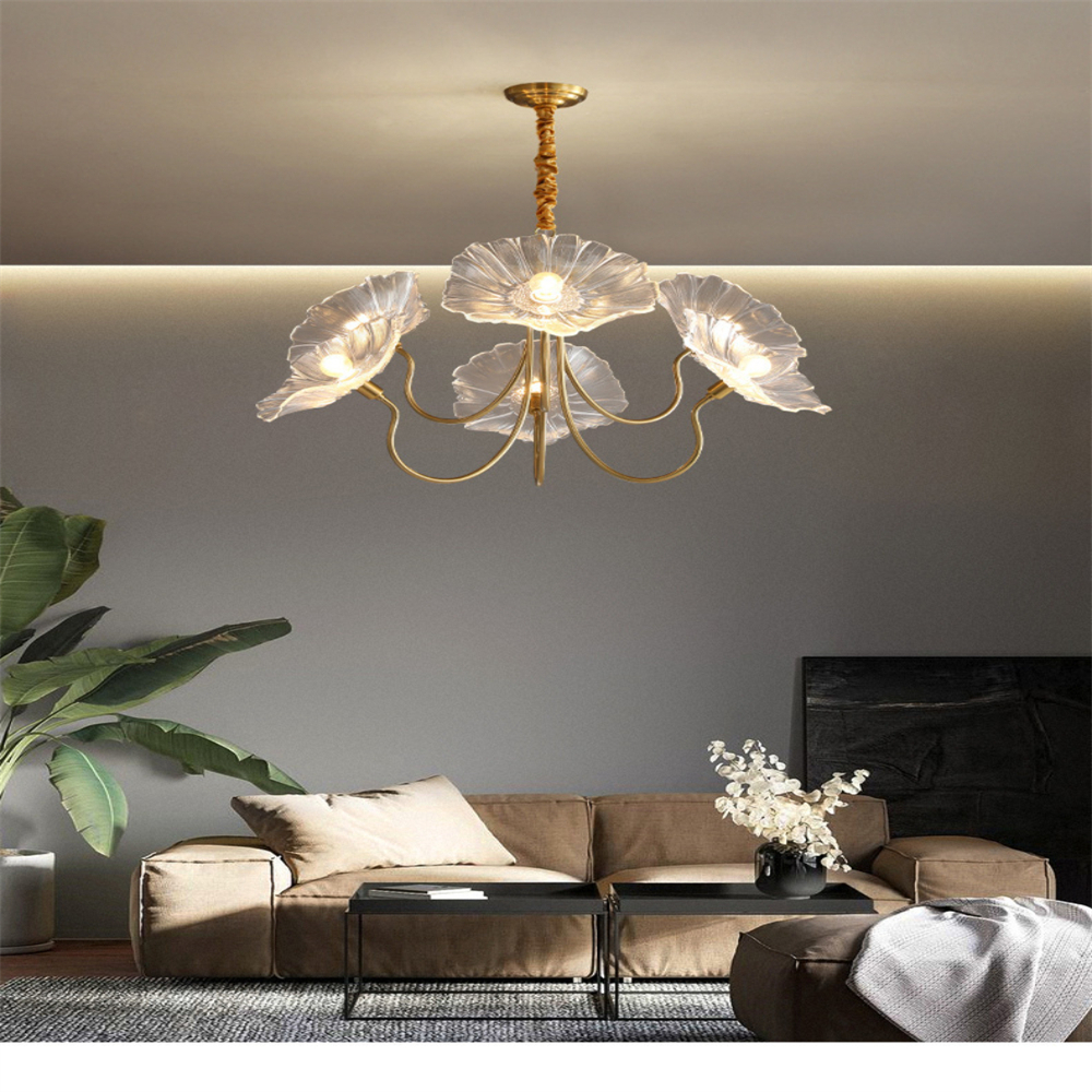 Nordic Retro Lotus Style Glass Pendant Light Luxury Living Room And Dining Room Light