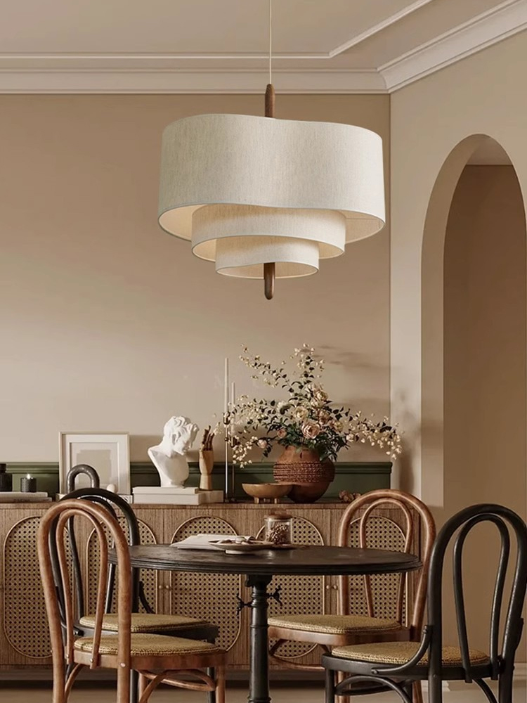 Vintage French Minimalist Fabric Chandelier Bedroom Decorative Lamp Dining Table Light