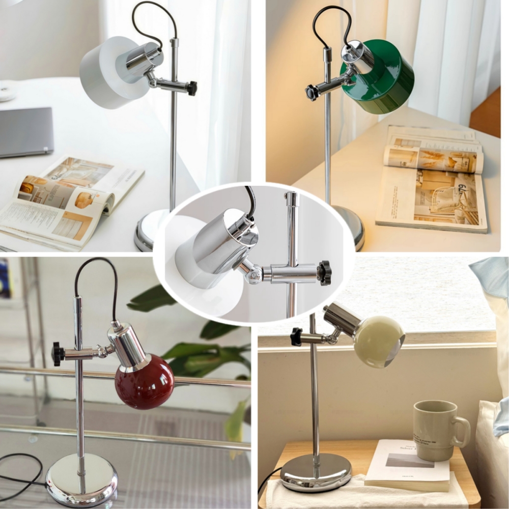 This table lamp channels retro Bauhaus charm with bold contrast colors and a sleek adjustable arm. Clean geometric lines meet practicality—angle the light for work, reading, or ambient glow. Its mid-century vibe adds character to desks or side tables, blending artistic flair with everyday use. A statement piece that marries color drama with timeless simplicity, elevating spaces effortlessly.