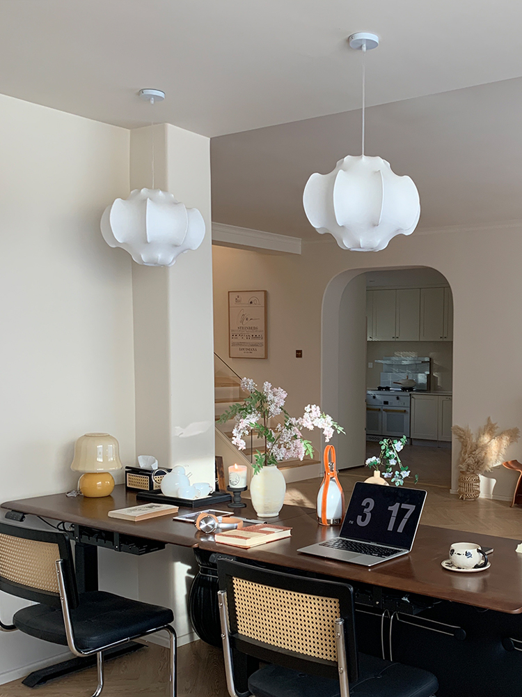 The use of imitation silk material adds a touch of opulence while being durable and easy to maintain. Its smooth texture and lustrous appearance enhance the overall aesthetic appeal, making it a standout feature in any dining room. The gentle glow emitted from each lampshade casts a warm and soothing light, illuminating your dining area with a soft, ambient radiance that sets the mood for memorable gatherings.