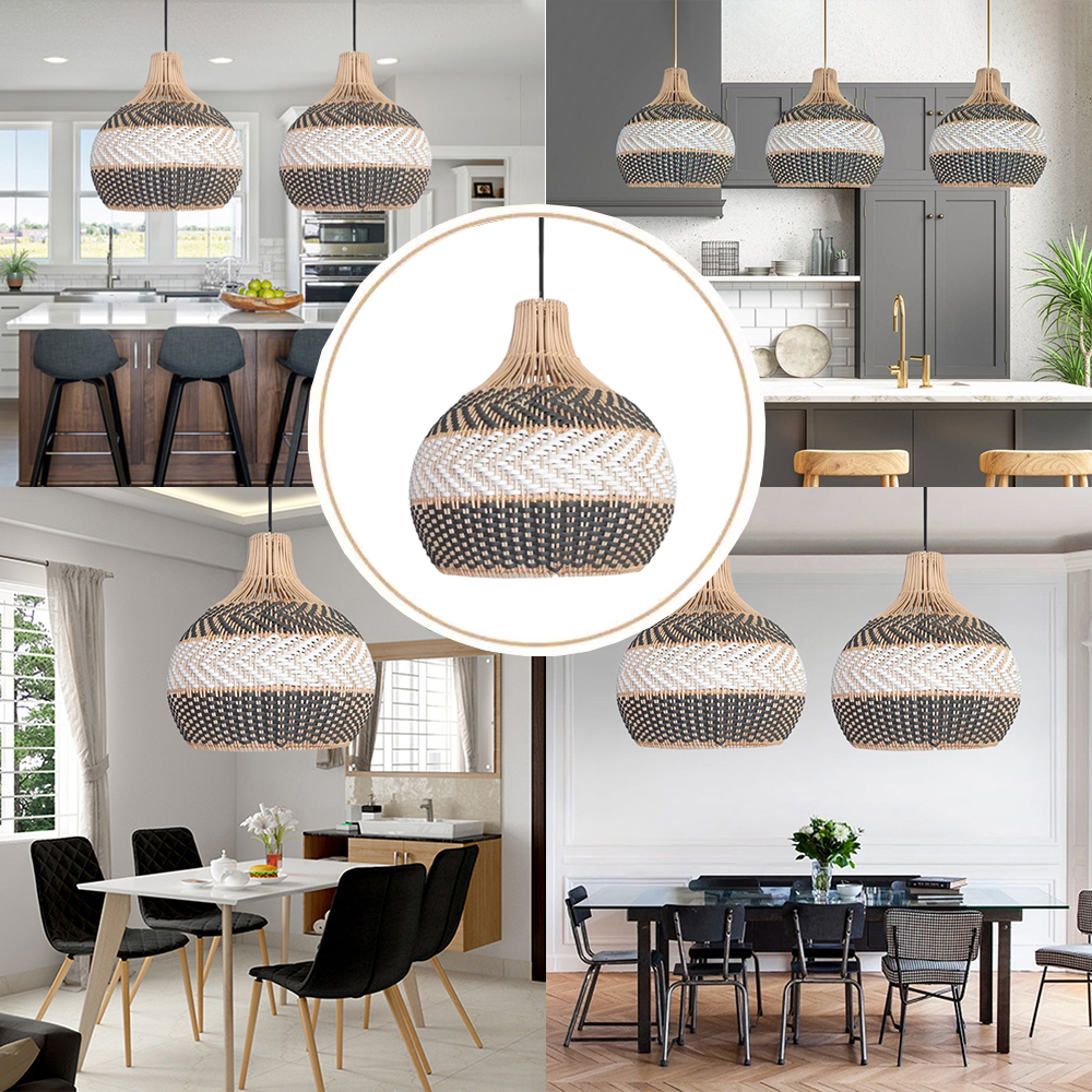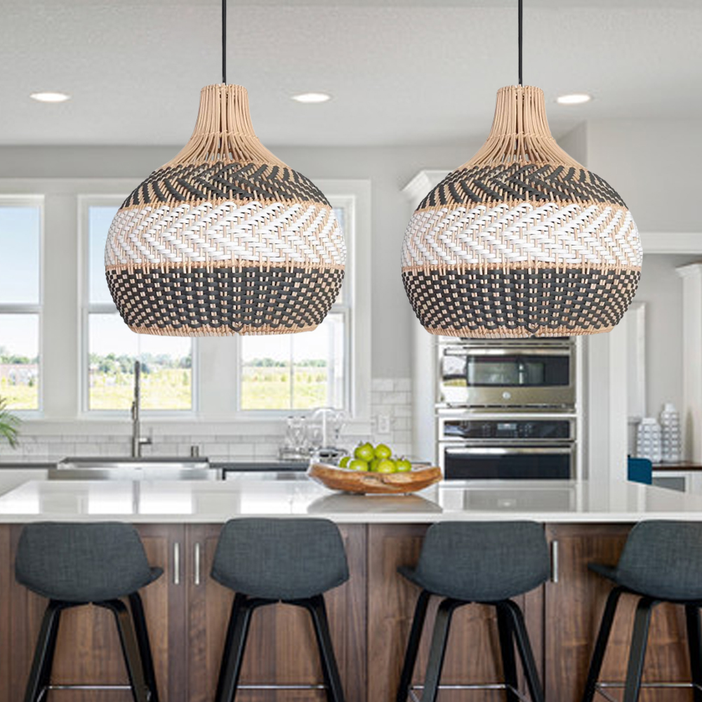 Florida Grey Dining Room Pendant Light Kitchen Island Rattan Woven Chandelier