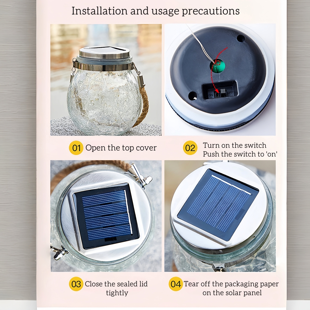 This solar - powered hanging lamp features cracked glass design, adding a unique charm. With IP65 waterproof rating, it withstands all weather. Automatically lights up at night, bringing soft illumination outdoors, perfect for gardens and patios.