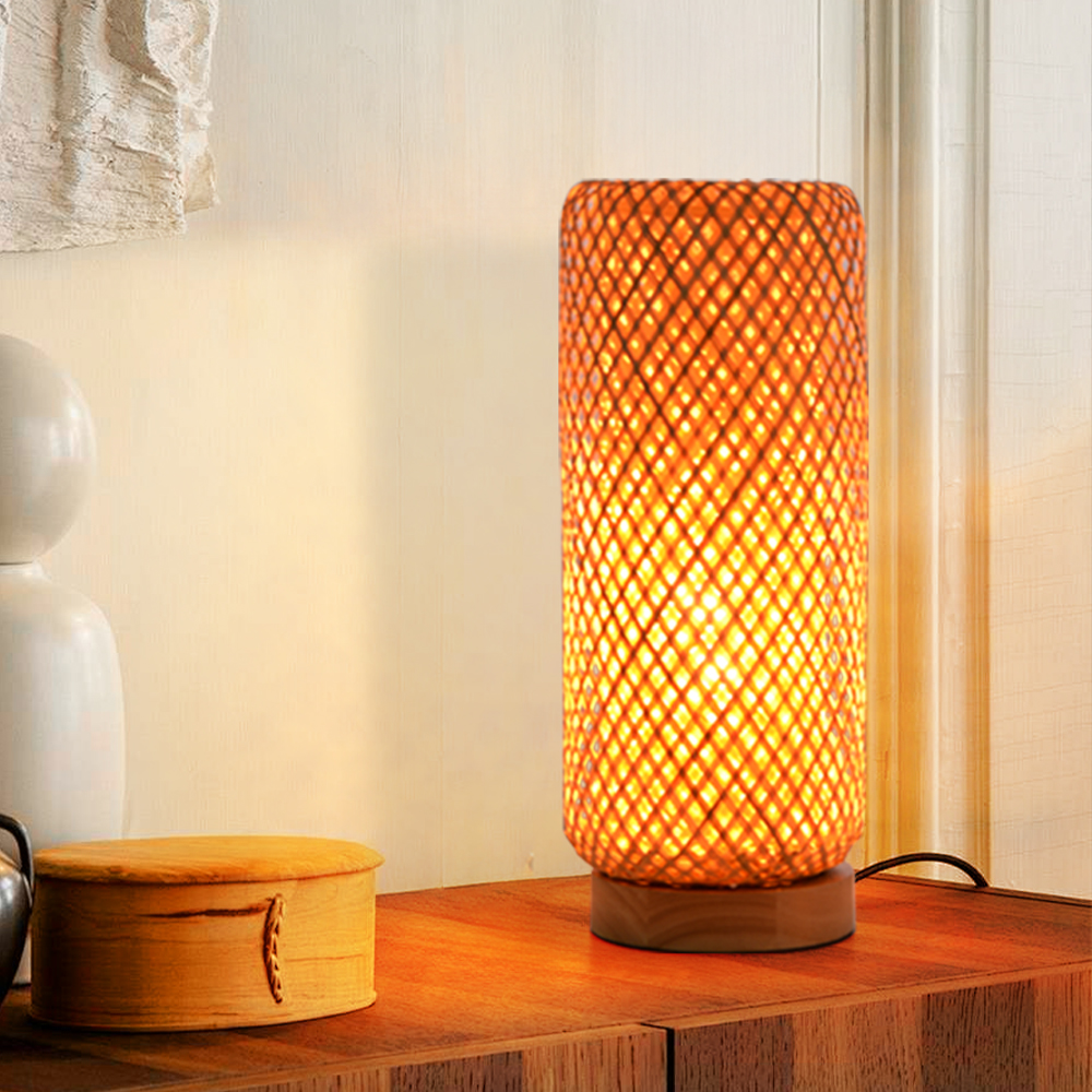 This bamboo-woven floor lamp creates a serene study atmosphere, blending natural textures with warm ambient light. The handwoven shade casts gentle, diffused glow, perfect for enhancing focus or adding a cozy, rustic charm to any space. A functional decor piece for tranquil evenings.