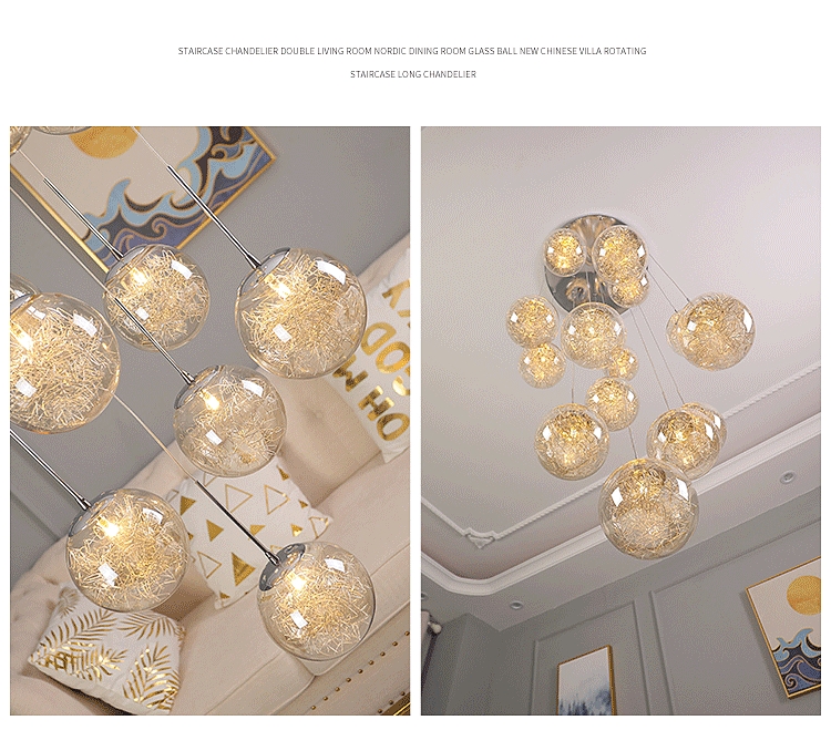 Villa Hollow Staircase Long Chandelier Modern Grand Foyer Lighting