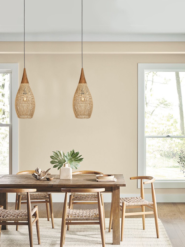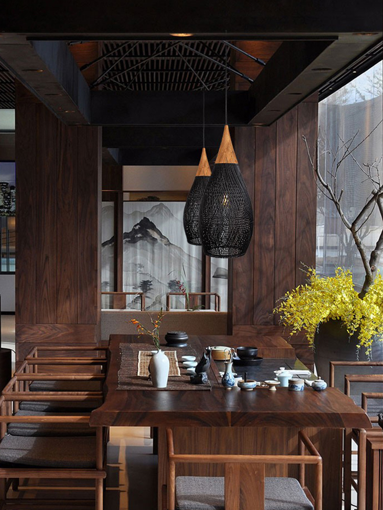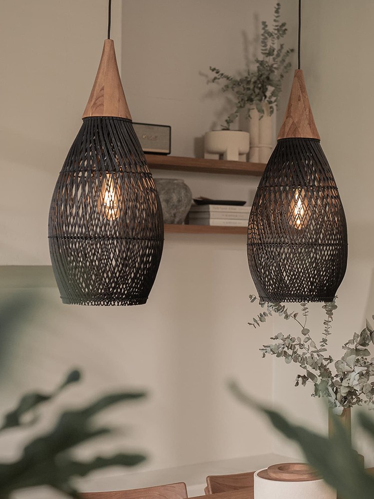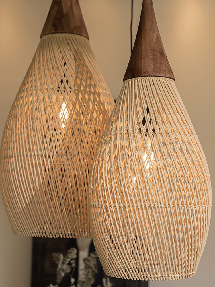 Dining Room Vintage Pendant Light Handmade Wood Rattan Lampshade