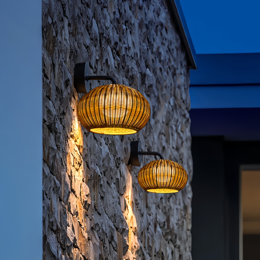 This woven rattan outdoor wall lamp brings natural charm to your courtyard. Crafted to be waterproof, it withstands the elements while casting a cozy, inviting glow. Its intricate weave adds texture and warmth, blending functionality with rustic elegance—ideal for enhancing outdoor spaces.
